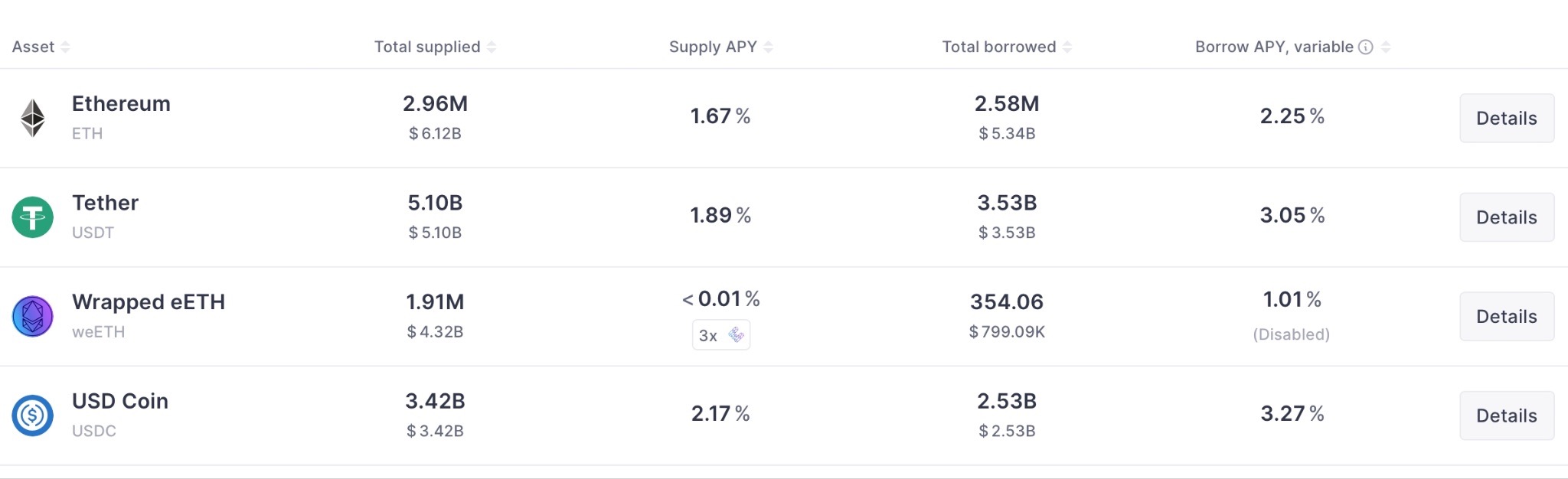 Now you're in. Click "Supply" on your stablecoins to start earning passive APY immediately. Or, if you want to unlock liquidity: supply your long-term ETH or WBTC as collateral, borrow stablecoins against it, and send those stables back to your exchange account.