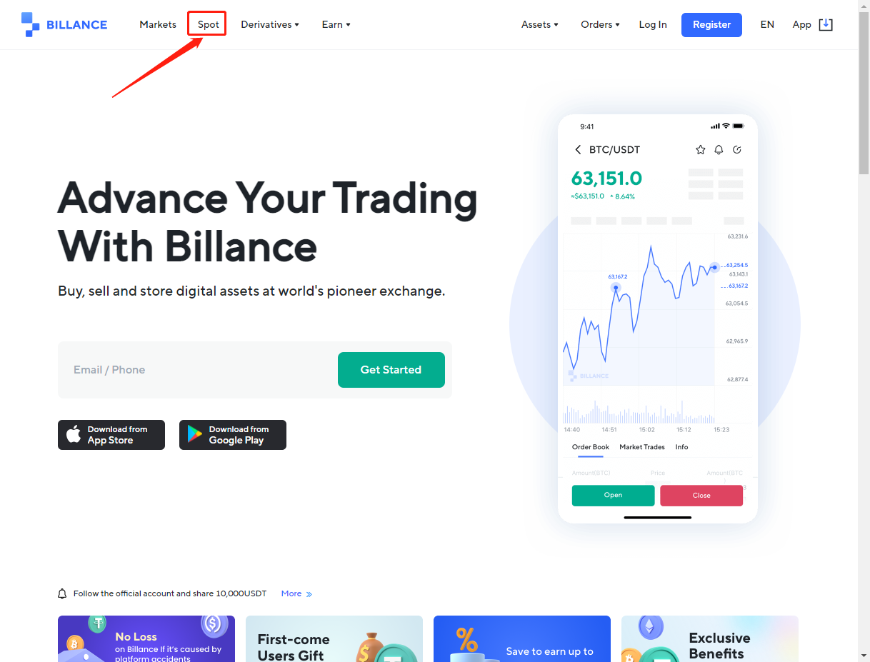 1. Connectez-vous à votre compte Tapbit et cliquez sur le bouton [Spot] pour accéder à l’interface de trading « Spot ».