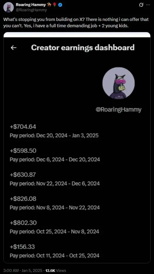 因此,在推特上,我们既可以看到 33 万粉丝的创作者一个月收入 2000 多美元: