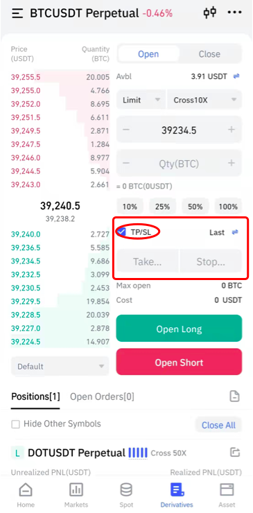 И Tapbit Spot, и USDT Perpetual поддерживают «Стоп Лосс и Тейк Профит», которые могут быть установлены или скорректированы перед размещением ордера или во время удержания позиции.