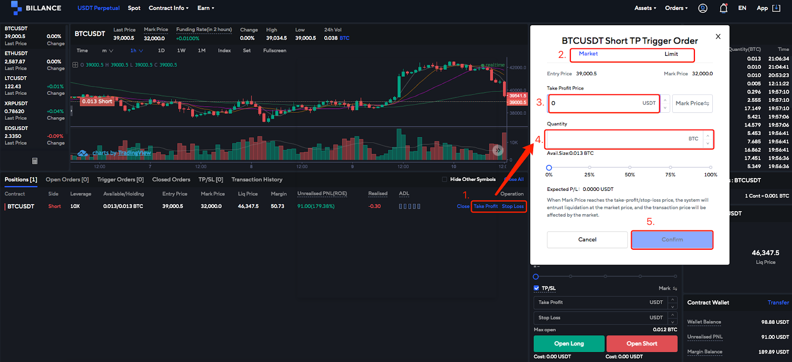 При изучении «тейк-профита и стоп-лосса» в Tapbit вам поможет следующий процесс;
