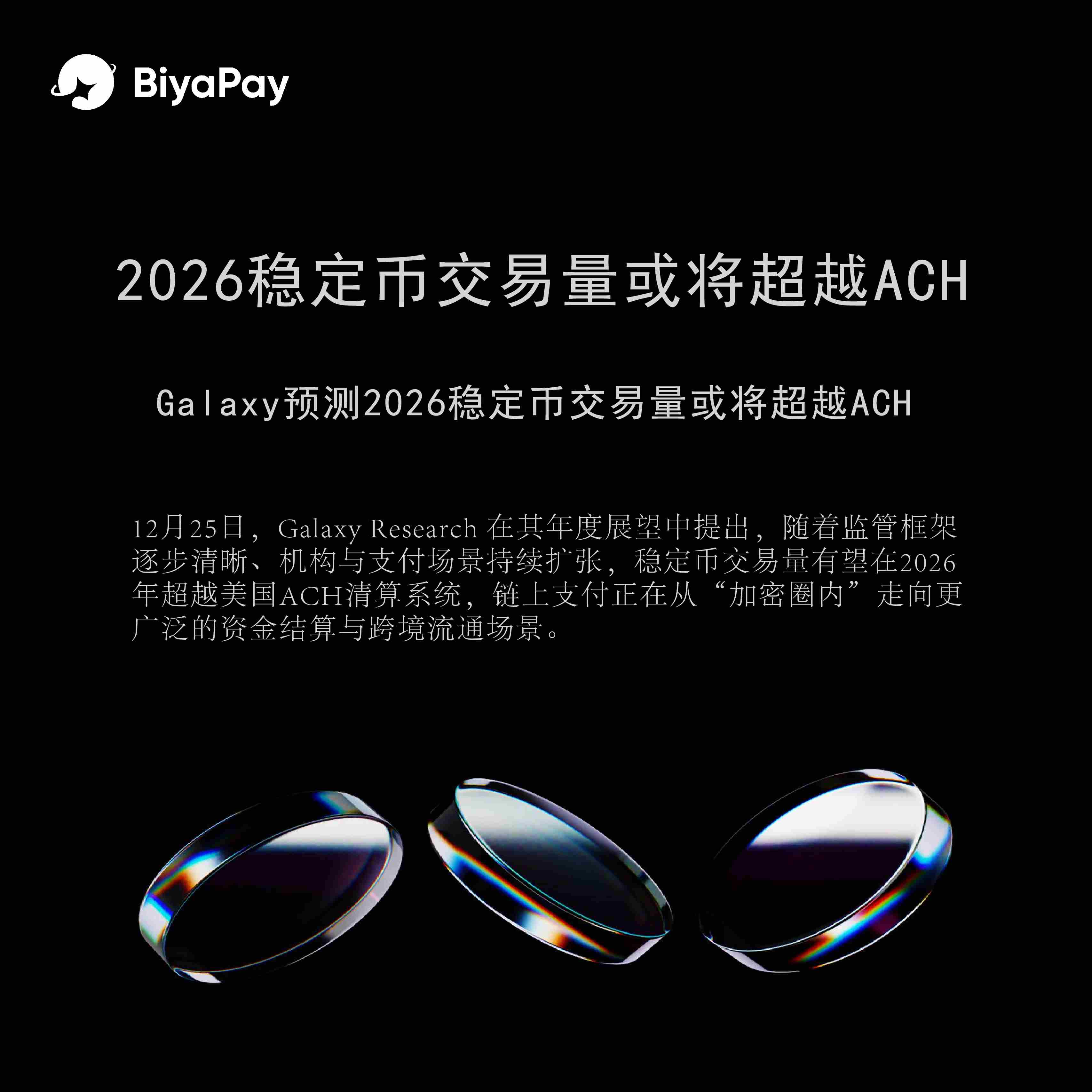 Deep Tide TechFlow Haberleri, 25 Aralık – Galaxy Research yıllık görünüm raporunda, düzenleyici çerçevelerin netleşmesi ve kurumsal ve ödeme senaryolarının genişlemeye devam etmesiyle birlikte, stablecoin işlem hacminin 2026 yılına kadar ABD ACH takas sistemini geçmesinin beklendiğini belirtti. Zincir üstü ödemeler, “kripto alanı içindeki” kullanımdan, daha geniş fon mutabakatı ve sınır ötesi dolaşım senaryolarına geçiş yapıyor.